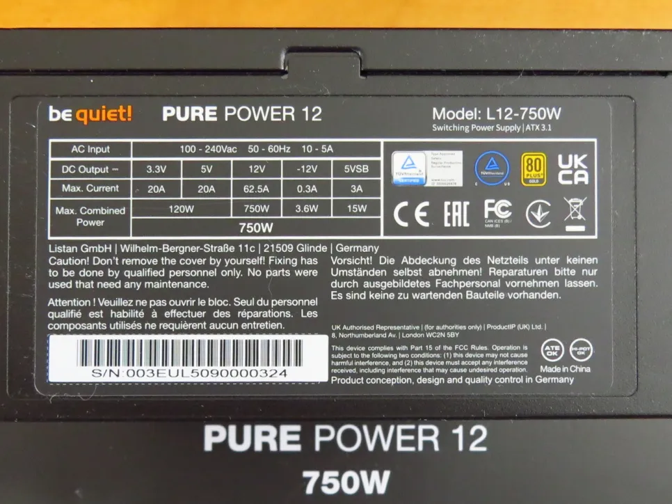 Novo Be Quiet! Pure Power 12 (EL12-750W) 80 Plus GOLD Silent ATX 3.1 PCIe 5.1 16-pin