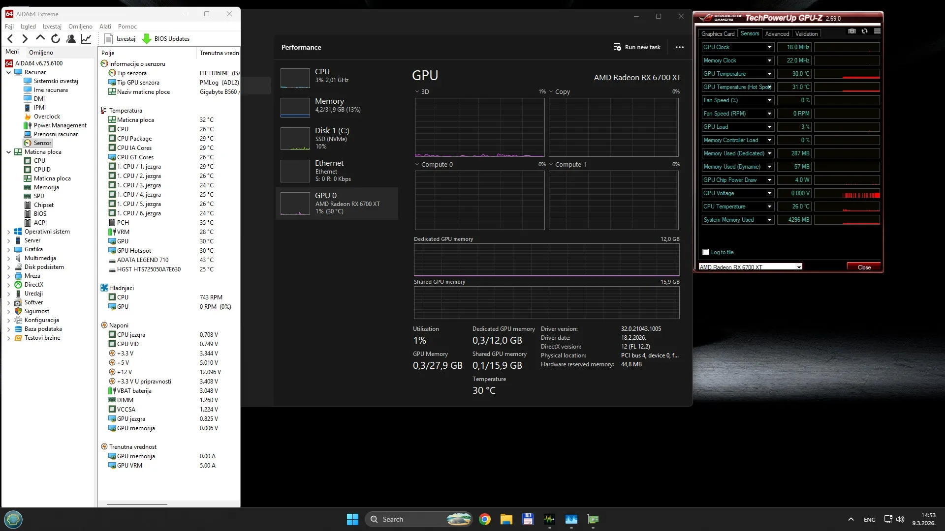 GPU: XFX RX 6700XT-QICK 319-12GB-GDDR 6-192 bita-Bandwidth