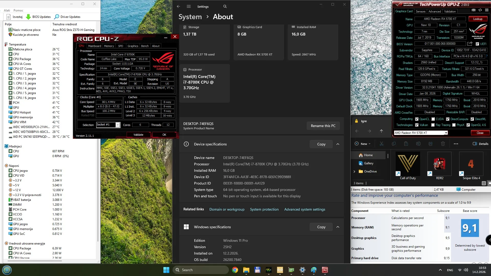 GPU: Saphhire Nitro RX 5700XT-8GB-GDDR 6-256 bita-Bandwidth 448 GB/s