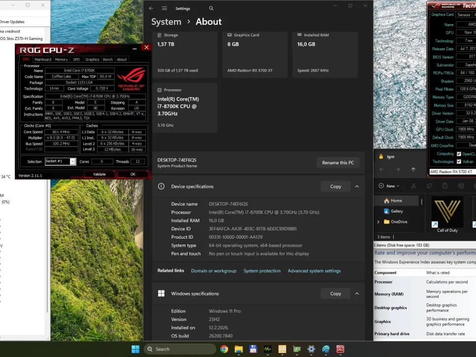 CPU: Intel Core i7-8700K-Cores 6-Threads 12-Cache 12MB-Frequency 3.7 GHz -Turbo 4.7GHz