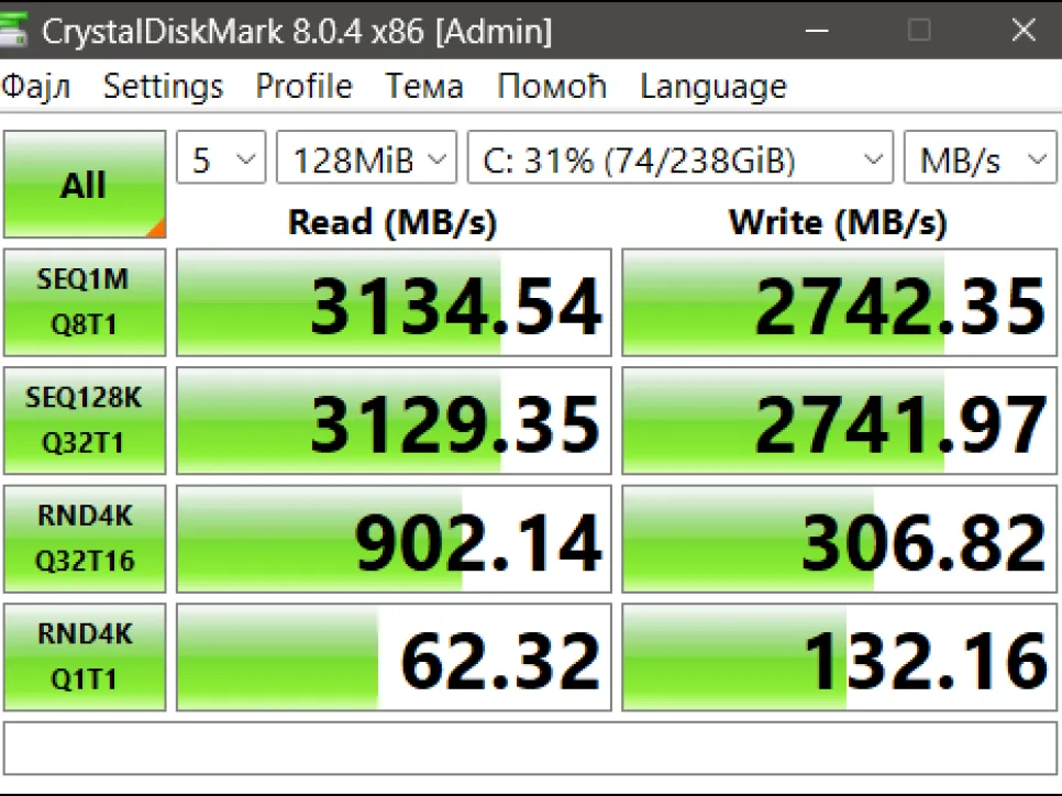 MAX Brzina R/W > 3000MB/s (zadnja slika TEST RW sa gore matičnim)