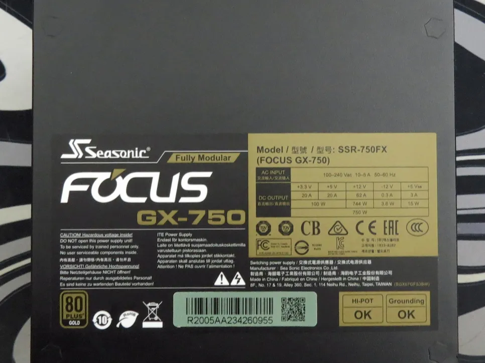 SEASONIC FOCUS GX-750 750W 80+ Gold Full Modular FOCUS Hybrid Fan Control Button